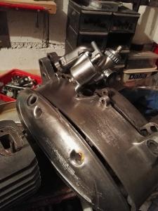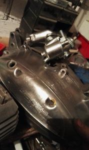 Zacznijmy od początku. Podczas przeglądania części z silnika dopatrzyłem się kilku uszkodzonych części. Bolce kosza sprzęgłowego też są krzywe więc kosz idzie na wymianę. Tryb biegu, chyba drugiego ma wyrobione frezy te wewnętrzne [już go wymieniłem na inny] oraz usterkę automatu zmiany biegów. Bolec miał spore luzy lecz zaklepałem i jest ok lecz myślę też nad lekkim spawem tam gdzie zaklepałem.