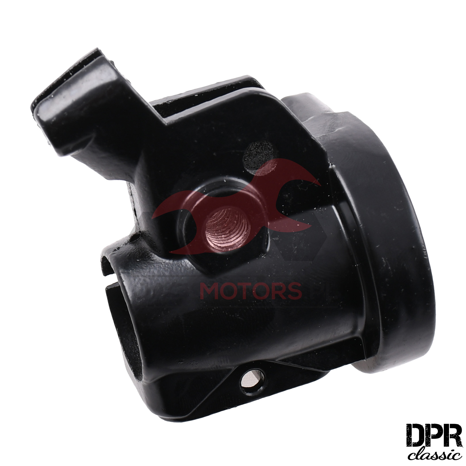 Ma mocowanie do przełącznika kierunkowskazów który wygląda identycznie jak te rometowe/wueskowe. Kształtem podobna do rometowej (z drugiej strony, na zdjęciu jest "spodnia" strona, niewidoczna). Ma wejście czujnika stop. Można dokupić do niej srebrną dźwignię. Chyba znalazłem graala.