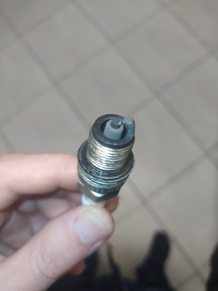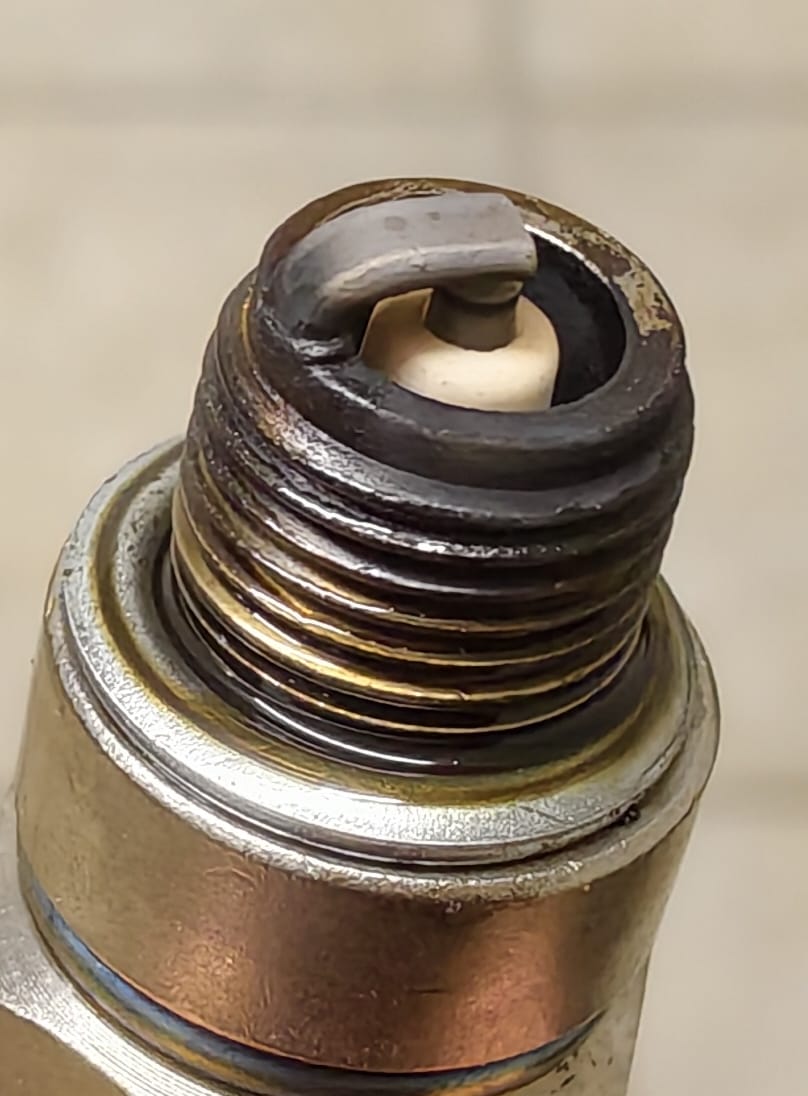 to jest moja świeca, właśnie wykręcona z Komara. Silnik pracuje na bogatszej mieszance, ponieważ jest w trakcie docierania, na syntetycznym oleju Shell Advance Ultra 2T
