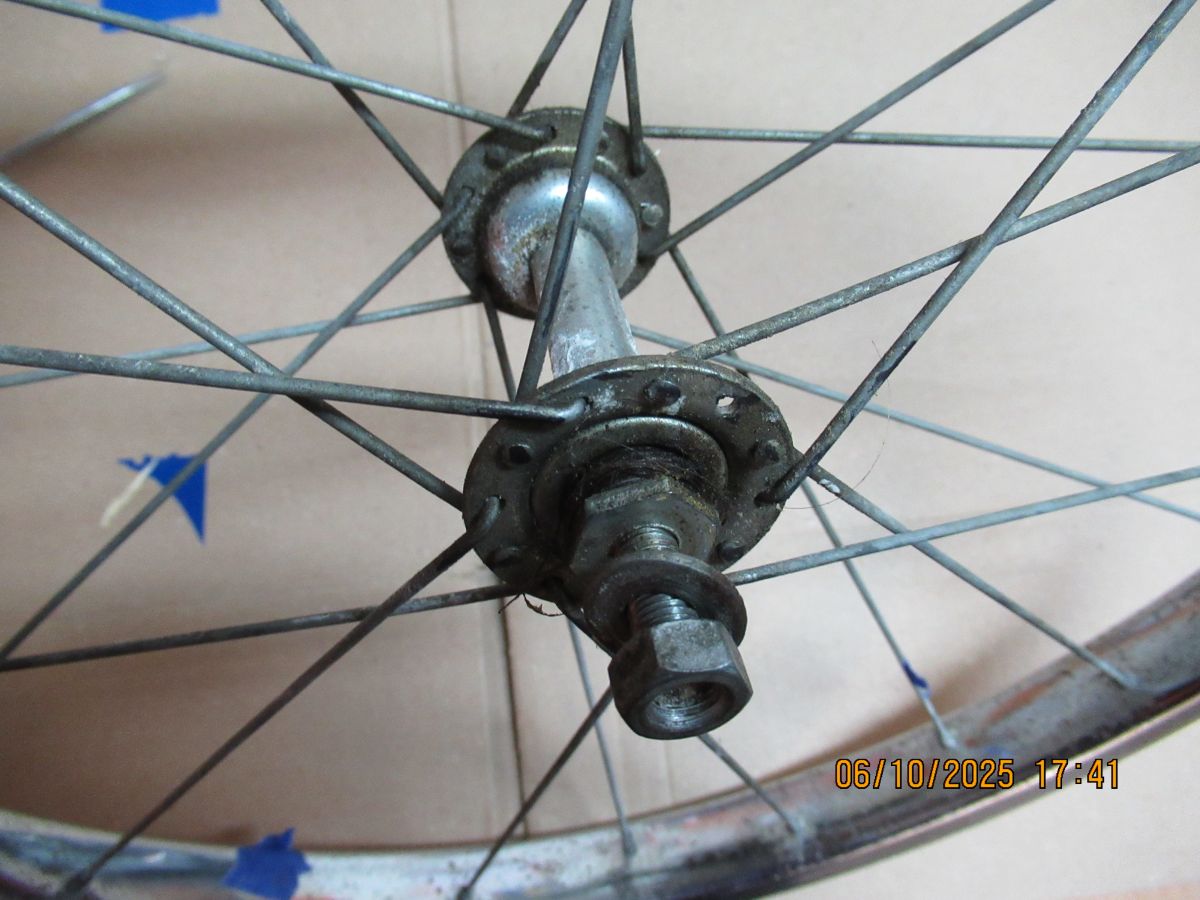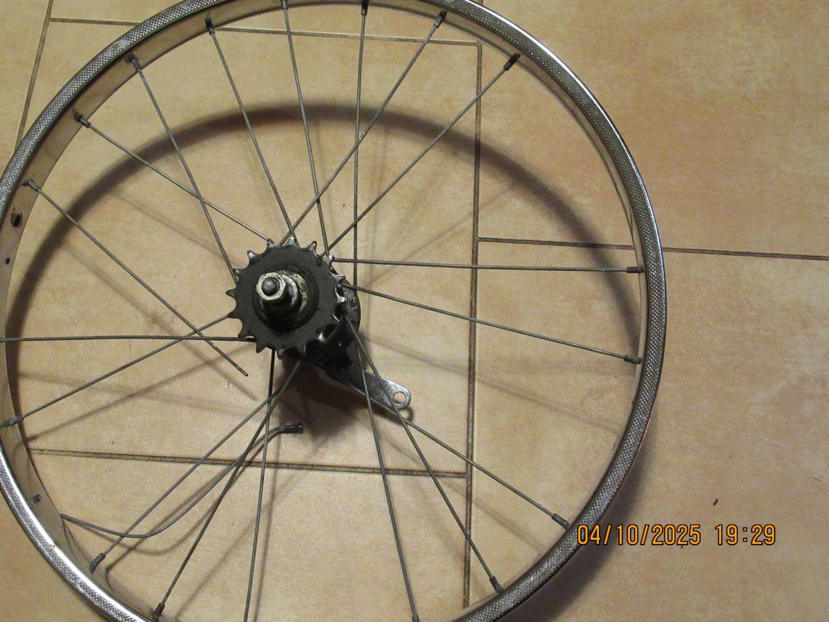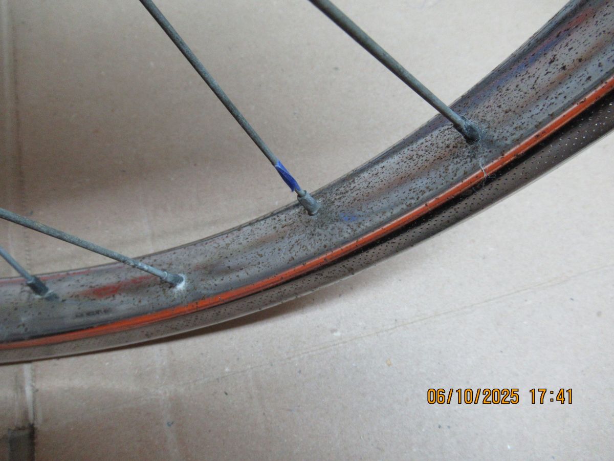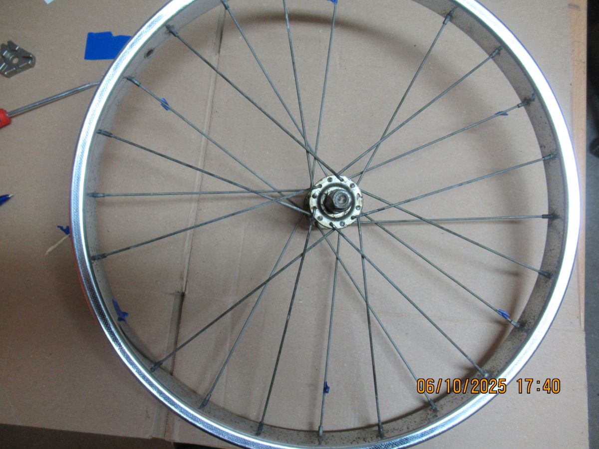 Po rozebraniu kół udało się wypolerować obręcze przy pomocy wełny stalowej i pasty K2 a następnie tarczy filcowej. Zaplecione nowe szprychy ze stali nierdzewnej oraz mosiężne nyple.